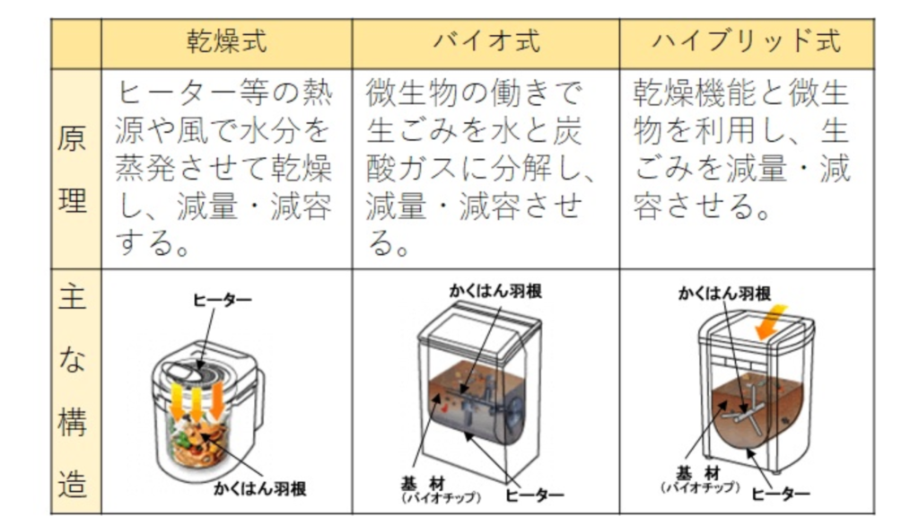 - 生ごみ処理機…電気式、手動式、生物分解等の方法により、生ごみを減量又は消滅処理することができる機器
